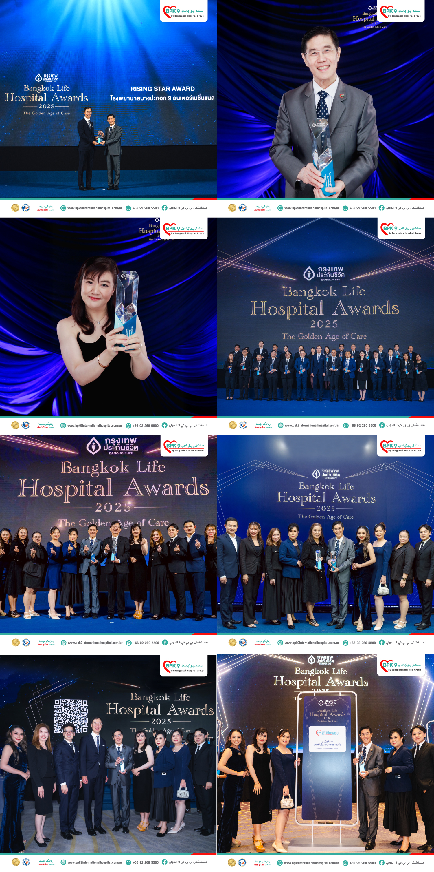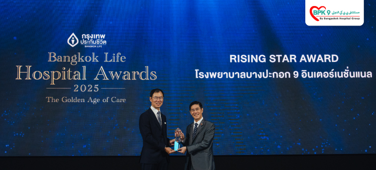 في يوم 14 نوفمبر 2025 مثّل كلٌّ من الدكتور براموك سونغشاككايو (نائب الرئيس التنفيذي لمجموعة مستشفيات بانبكوك ومدير مستشفى بي بي كي 9 الدولي) و الدكتورة نوشاري سين سوكبورن (مساعدة مدير الشؤون الطبية والطبيبة المشرفة على إدارة الموارد الطبية في مستشفى بي بي كي 9 الدولي) وفدَ الإدارة للمشاركة في استلام الجائزة خلال حفل "BANGKOK LIFE HOSPITAL AWARDS 2025" وذلك في قاعة "Grand Room" بالطابق الرابع في فندق "Conrad Bangkok"، من السيد شون سوبونبانيتش، (العضو المنتدب والرئيس التنفيذي) لشركة بانكوك للتأمين على الحياة (شركة عامة محدودة).