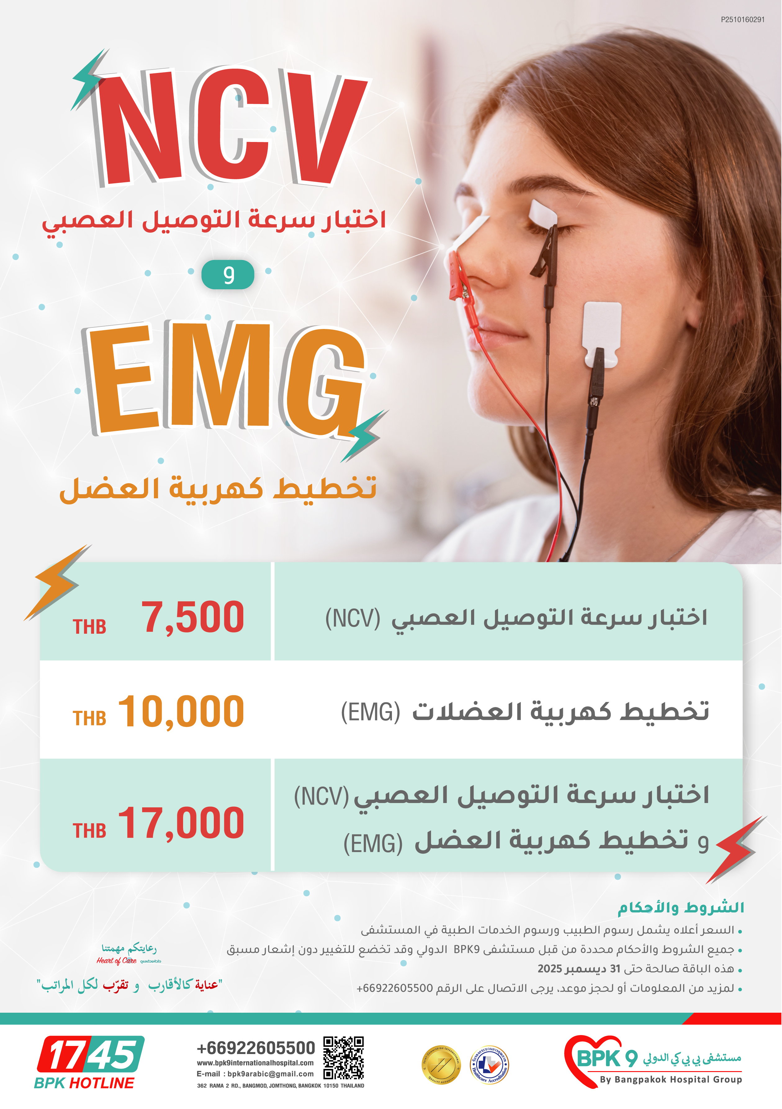 اختبار سرعة التوصيل العصبي (NCV) وتخطيط كهربية العضل (EMG) هي إجراءات تشخيصية متقدمة تُستخدم لتقييم صحة الأعصاب والعضلات، وتساعد الأطباء في تشخيص وعلاج الحالات التي تؤثر على الحركة أو الإحساس أو قوة العضلات بدقة.