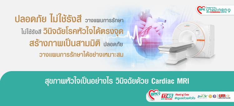 การตรวจหัวใจด้วย Cardiac MRI เป็นการตรวจโครงสร้างและการทำงานของหัวใจ สามารถประเมินการไหลเวียนของเลือดในหัวใจสร้างภาพเป็นสามมิติช่วยในการการวินิจฉัยโรคหัวใจแต่ละชนิดได้อย่างแม่นยำ โดยการใช้คลื่นแม่เหล็กไฟฟ้าและคลื่นวิทยุในการสร้างภาพ และสามารถวางแผนการรักษาแต่ละคนได้อย่างเหมาะสม นับเป็นวิธีที่ปลอดภัย ไม่ก่อให้เกิดความเจ็บปวด โดยผู้รับการตรวจไม่มีความเสี่ยงในการสัมผัสกัมมันตภาพรังสีใดๆ