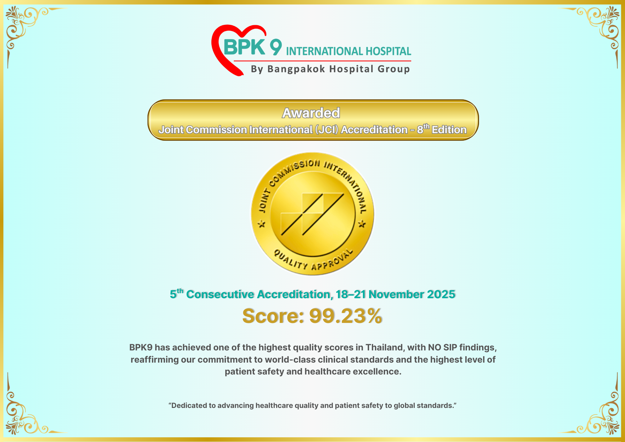 We BPK9 International Hospital proudly announce our 5th consecutive accreditation by the Joint Commission International (JCI) — Edition 8, achieving an outstanding 99.23% quality score following the latest evaluation held during 18–21 November 2025.