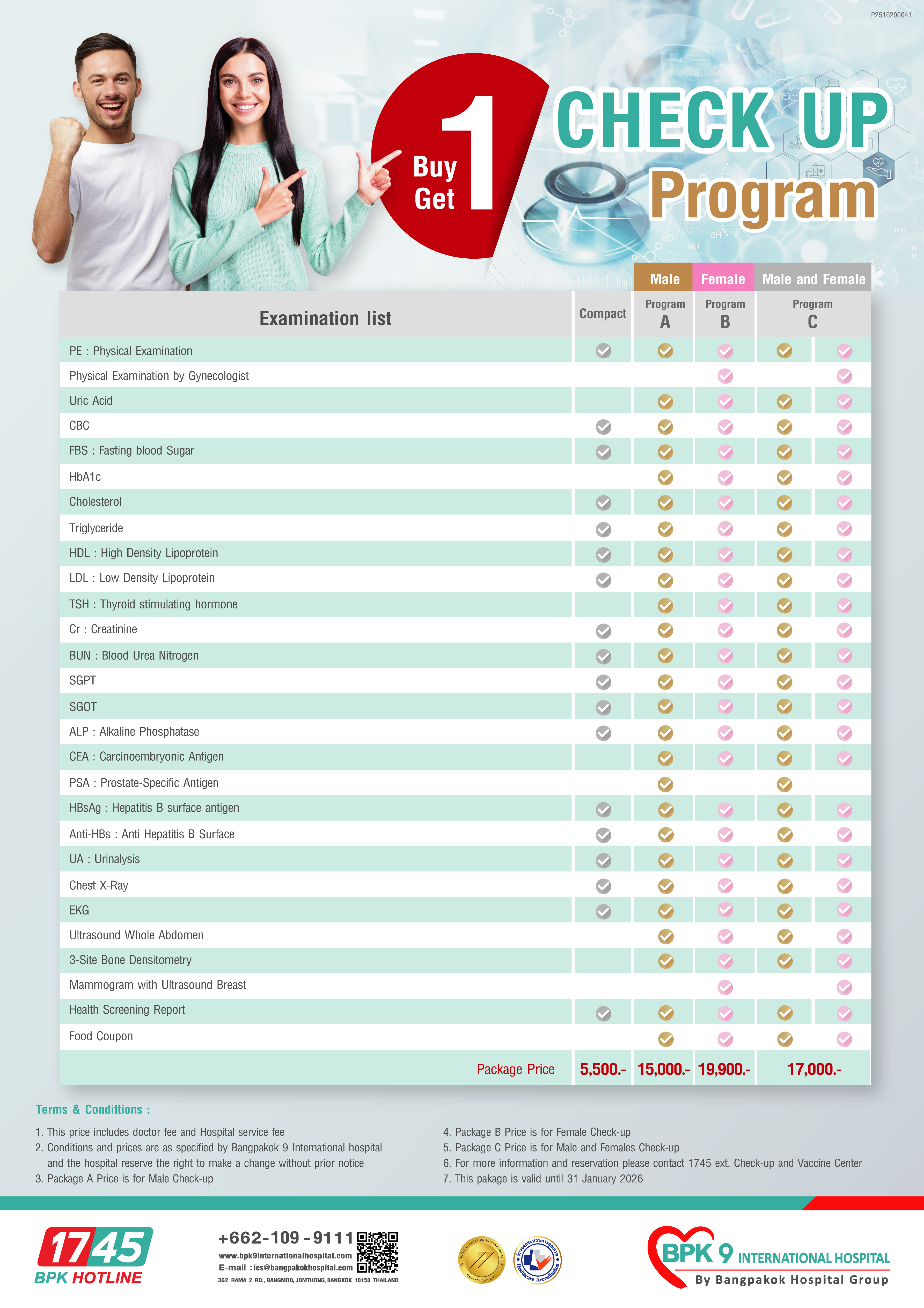 - For more information or advance appointments, please contact BPK hotline 1745, Ext. Checkup & Vaccine Center, 3rd floor.