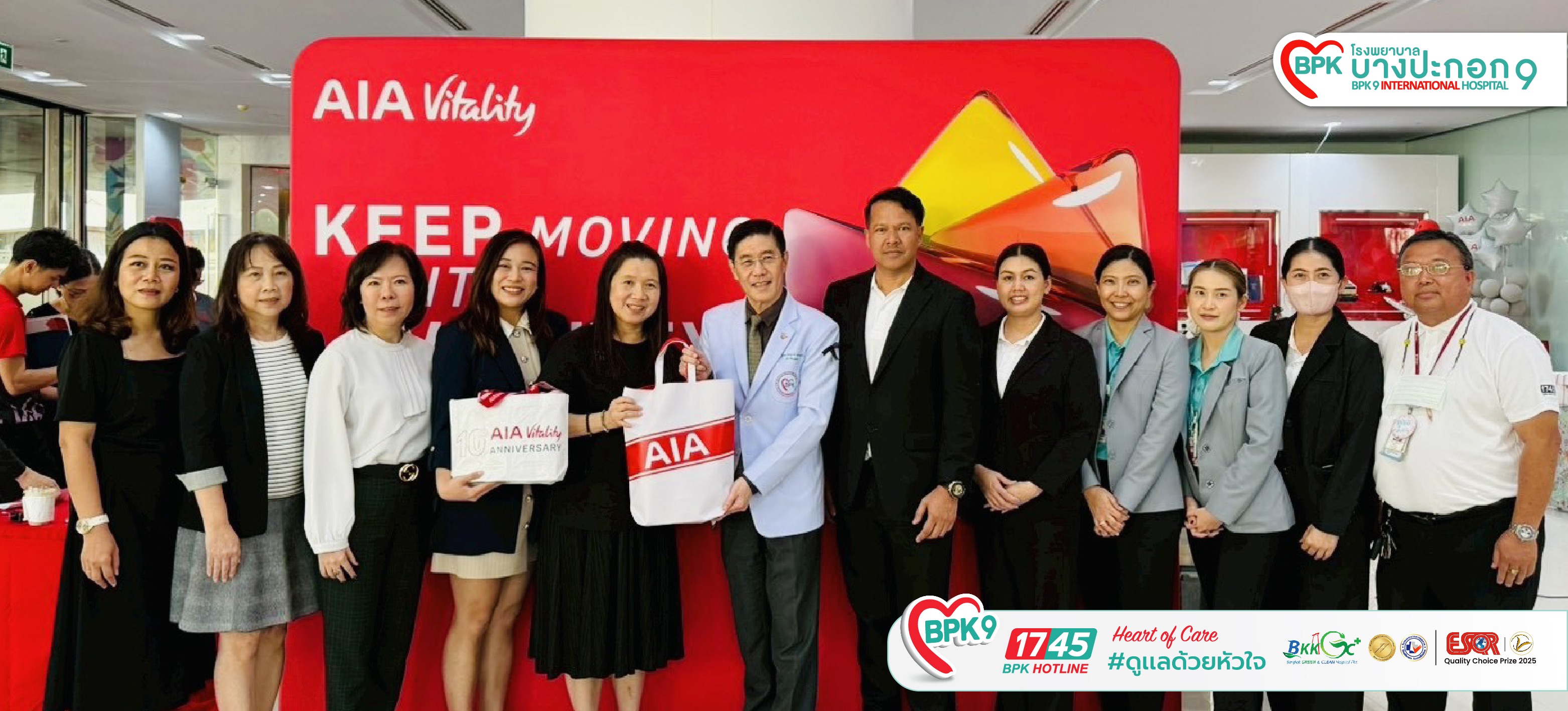 เมื่อวันที่ 16 และ 17 ธันวาคม 2568 ที่ผ่านมา โรงพยาบาลในเครือโรงพยาบาลบางปะกอก – ปิยะเวท ร่วมจัดกิจกรรม ‘YEAR -END Healthy Day ส่งท้ายปี สะสมคะแนนเอไอเอไวทัลลิตี้‘ ณ ลานกิจกรรมชั้น 2 อาคาร AIA (สำนักงานใหญ่) เพื่อร่วมส่งเสริมสุขภาพให้กับพนักงาน เอไอเอ ประเทศไทย โดยมี นพ.ประมุกข์ ทรงจักรแก้ว (รองประธานเจ้าหน้าที่บริหาร รพ.ในเครือบางปะกอก และผู้อำนวยการรพ.บางปะกอก 9 อินเตอร์เนชั่นแนล) เข้าร่วมกิจกรรม และรับมอบของที่ระลึก จาก พญ.นุสรา อรรฆศิลป์ (ผู้อำนวยการฝ่ายการแพทย์ บริษัท เอไอเอ จำกัด)