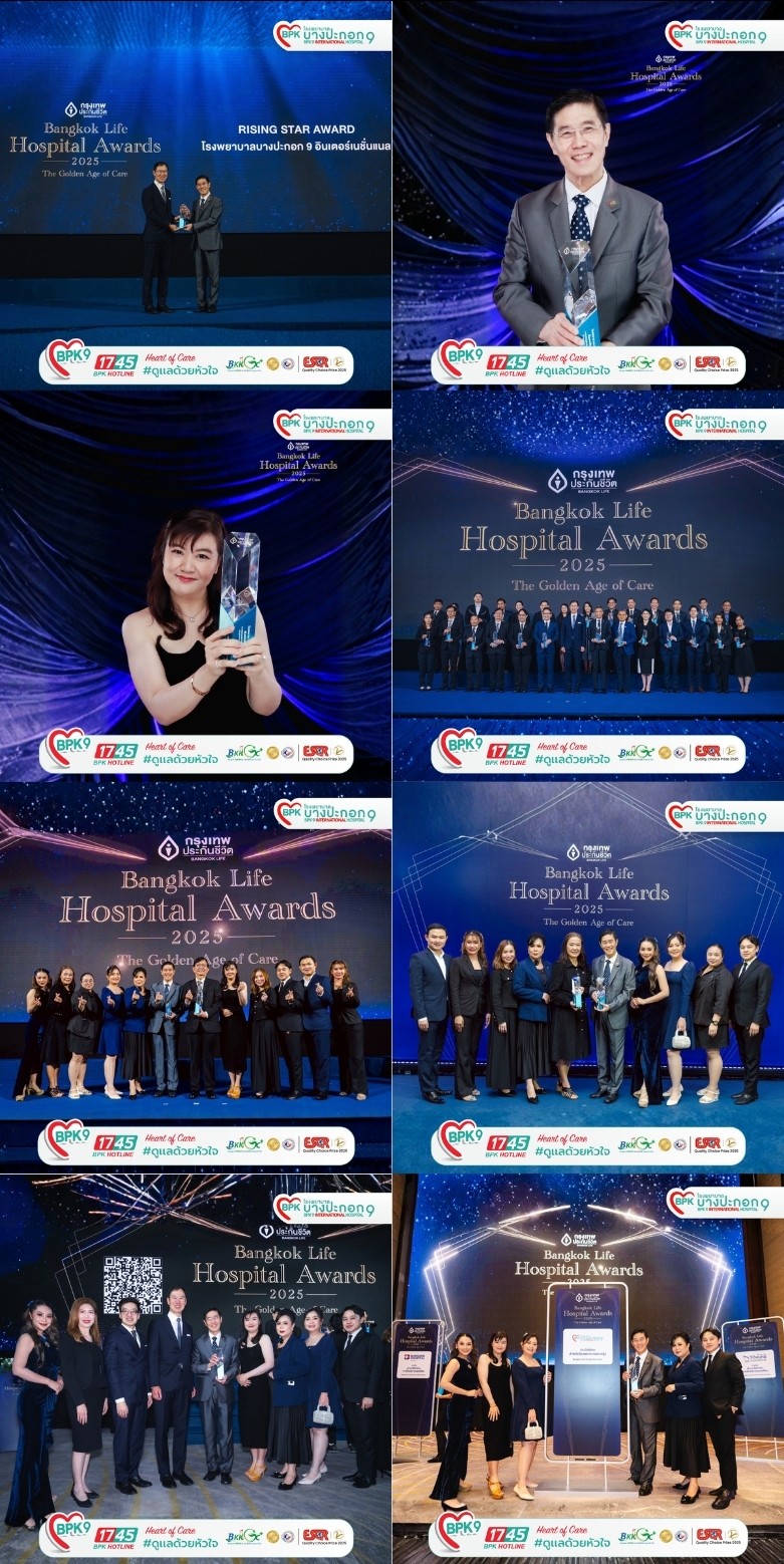 นพ.ประมุกข์ ทรงจักรแก้ว (รองประธานเจ้าหน้าที่บริหารโรงพยาบาลในเครือบางปะกอกและผู้อำนวยการโรงพยาบาลบางปะกอก 9 อินเตอร์เนชั่นแนล) , พญ.นุชจรี สินสุขพร (ผู้ช่วยผู้อำนวยการสายการแพทย์และแพทย์ผู้บริหารการใช้ทรัพยากรทางการแพทย์โรงพยาบาลบางปะกอก 9 อินเตอร์เนชั่นแนล) พร้อมคณะผู้บริหาร เป็นตัวแทนเข้าร่วมรับรางวัลในงาน "BANGKOK LIFE HOSPITAL AWARDS 2025" ณ ห้องแกรนด์รูม ชั้น 4 โรงแรมคอนราด กรุงเทพ จากนายโชน โสภณพนิช (กรรมการผู้จัดการใหญ่และประธานเจ้าที่บริหาร) บริษัท กรุงเทพประกันชีวิต จำกัด (มหาชน) เมื่อวันที่ 14 พฤศจิกายน 2568 ที่ผ่านมา