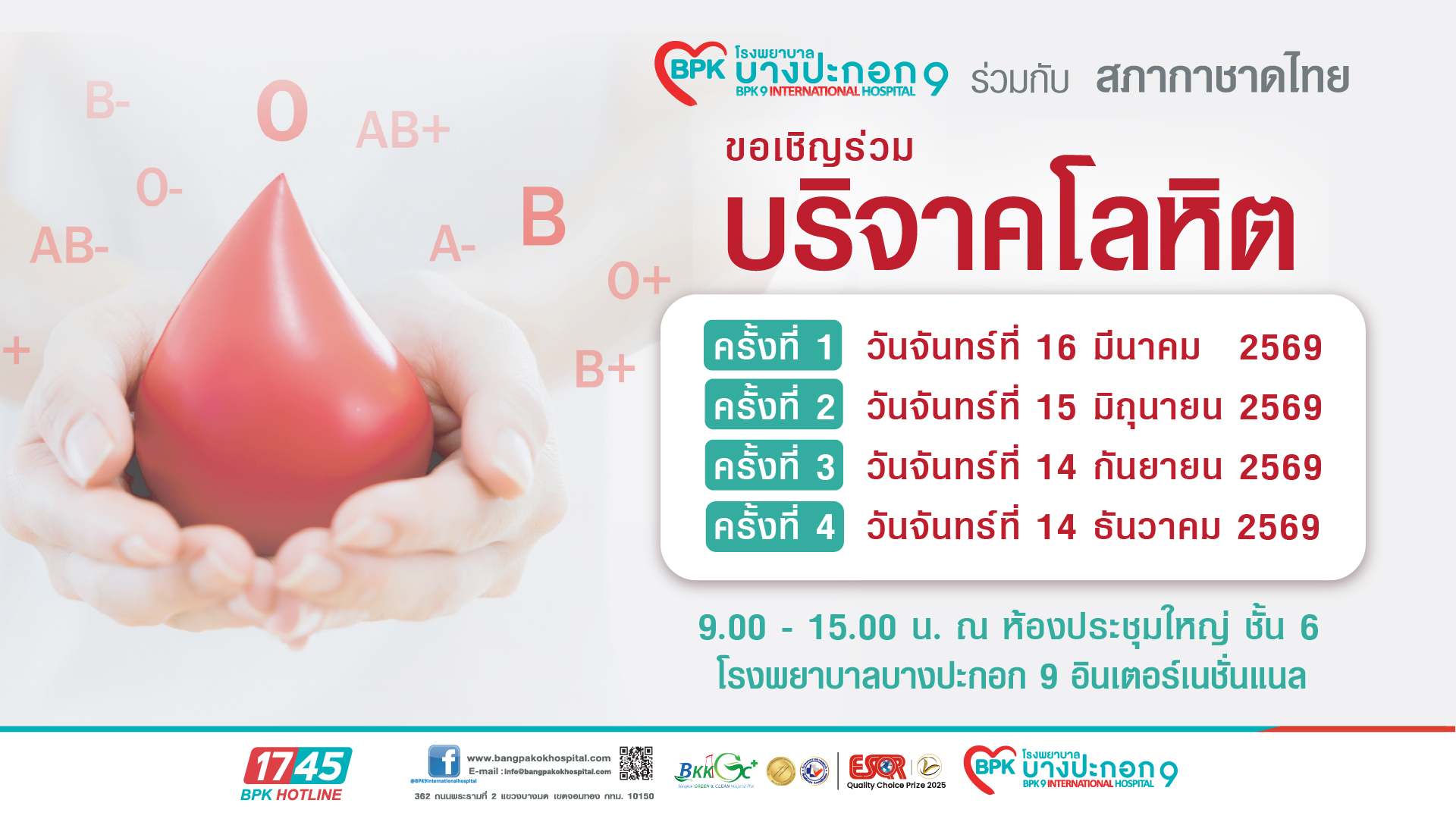 โรงพยาบาลบางปะกอก 9 อินเตอร์เนชั่นแนล ร่วมกับ ศูนย์บริการโลหิตแห่งชาติ สภากาชาดไทย
