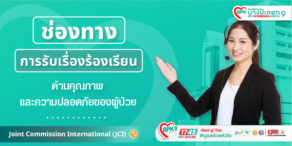 โรงพยาบาลบางปะกอก 9 อินเตอร์เนชั่นแนล มุ่งมั่นที่จะมอบบริการที่มีคุณภาพและปลอดภัยสูงสุดสำหรับผู้ป่วยทุกท่าน หากท่านมีข้อกังวลหรือข้อเสนอแนะเกี่ยวกับคุณภาพการบริการหรือความปลอดภัยในระหว่างการเข้ารับการรักษา ท่านสามารถติดต่อฝ่ายบริหารของโรงพยาบาลได้โดยตรงผ่านช่องทางดังต่อไปนี้ :