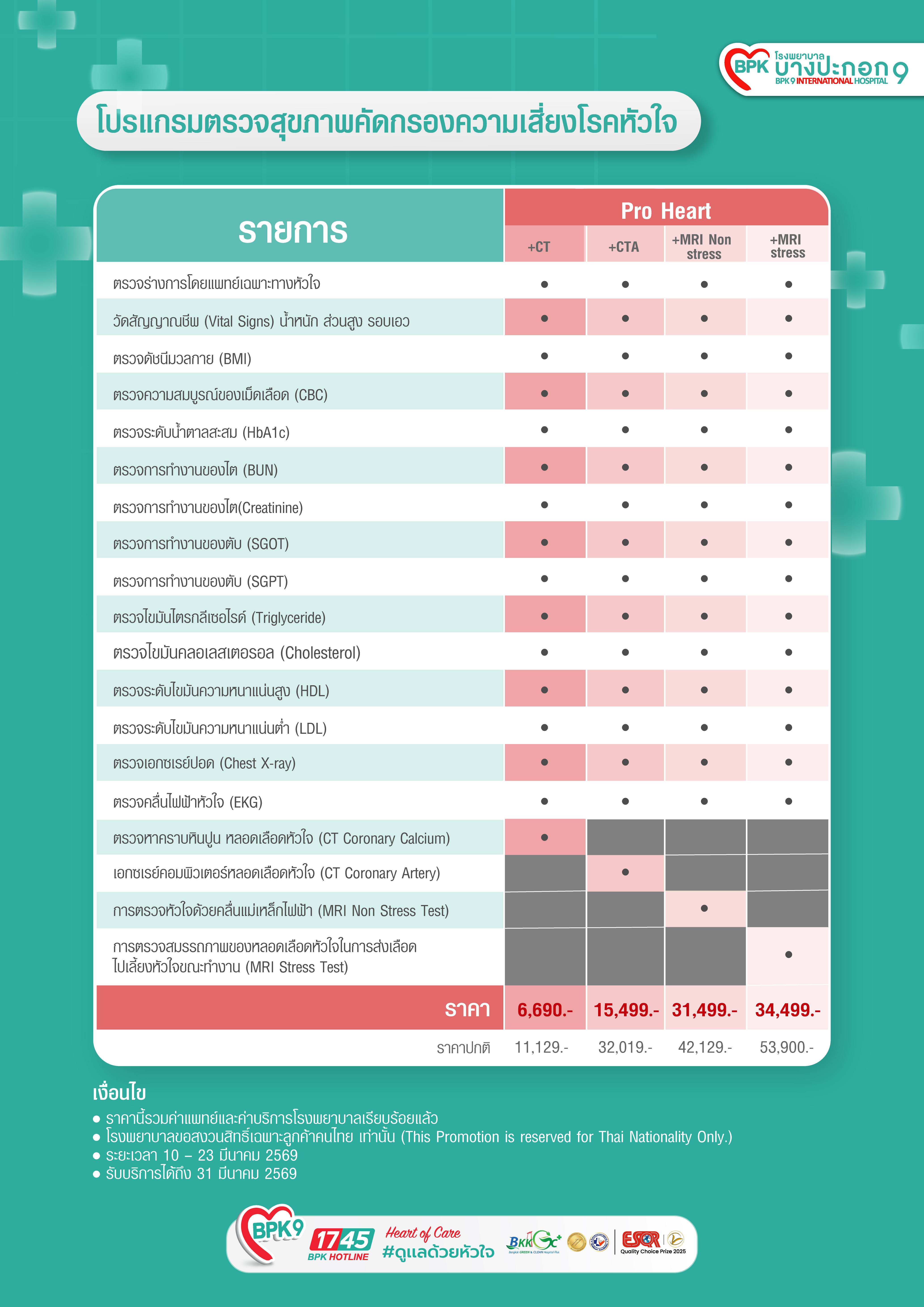 Campaign_MAR โปรแกรมตรวจสุขภาพพร้อมด้วยตรวจคราบหินปูนในหลอดเลือดหัวใจ CT Coronary Calcification ราคา 6,690