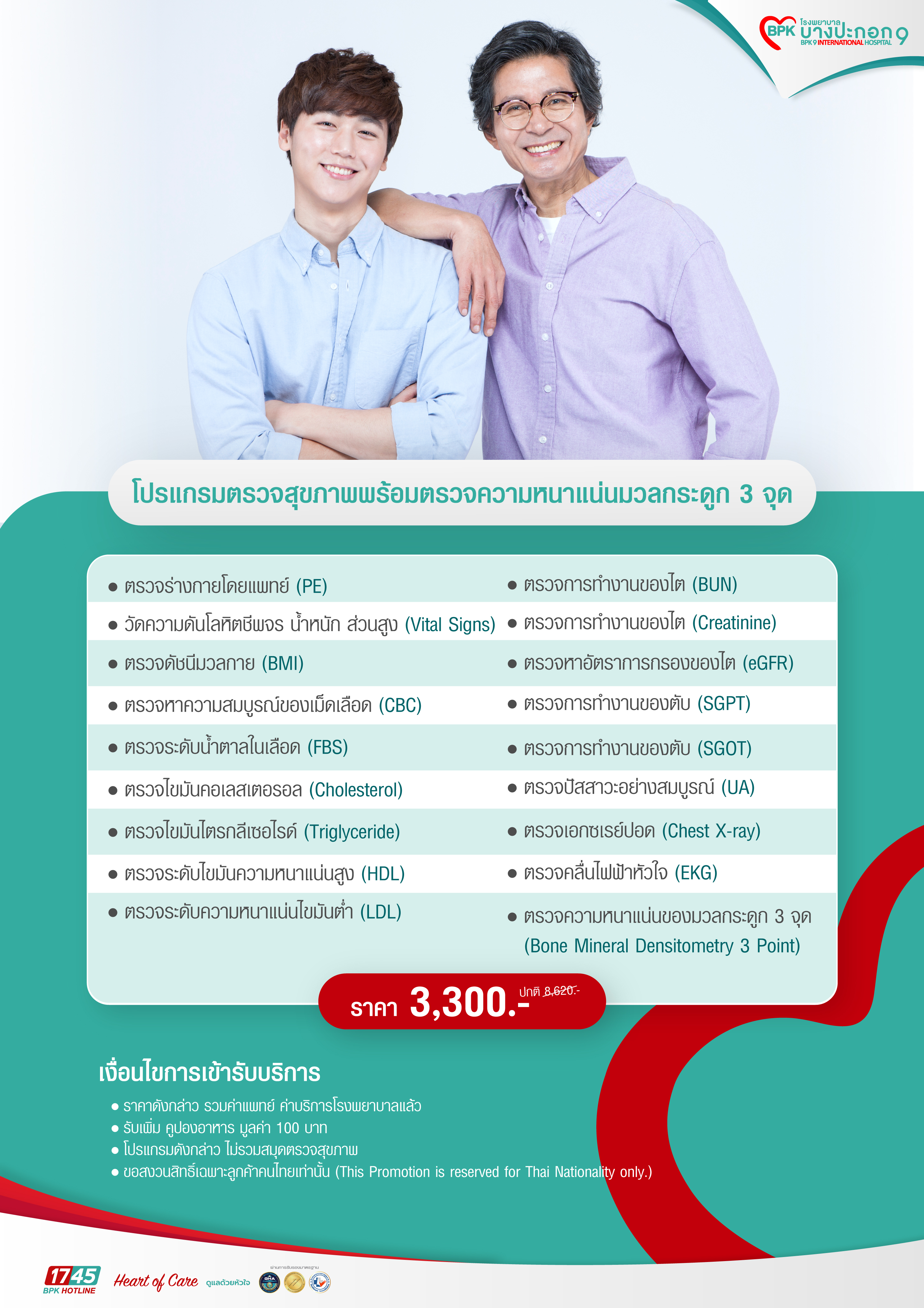 Health Together_โปรแกรมตรวจสุขภาพพร้อมตรวจความหนาแน่นของมวลกระดูก ราคา 3,300 บาท