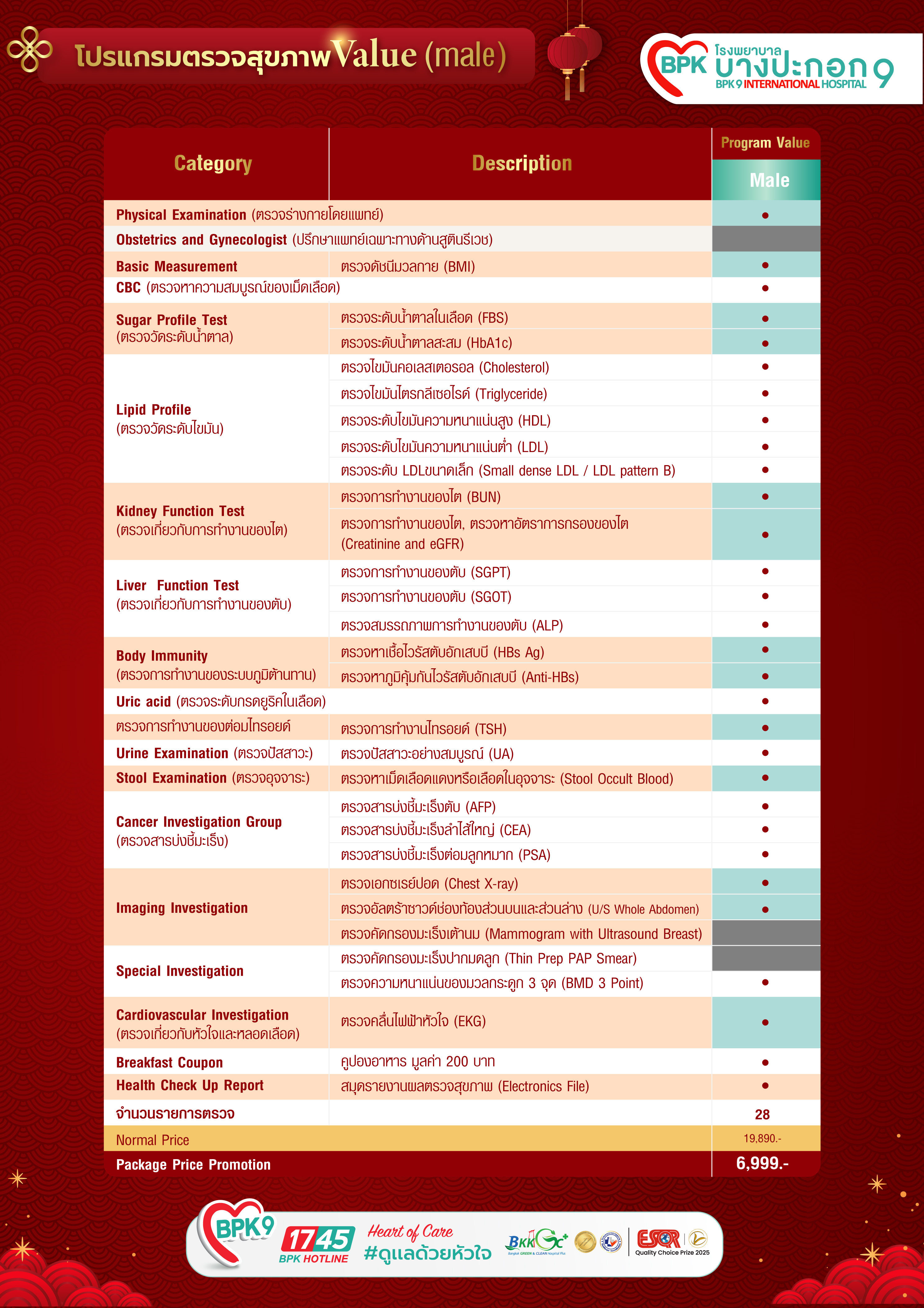 Chinese_โปรแกรมตรวจสุขภาพ Value (Male) ราคา 6,999.-