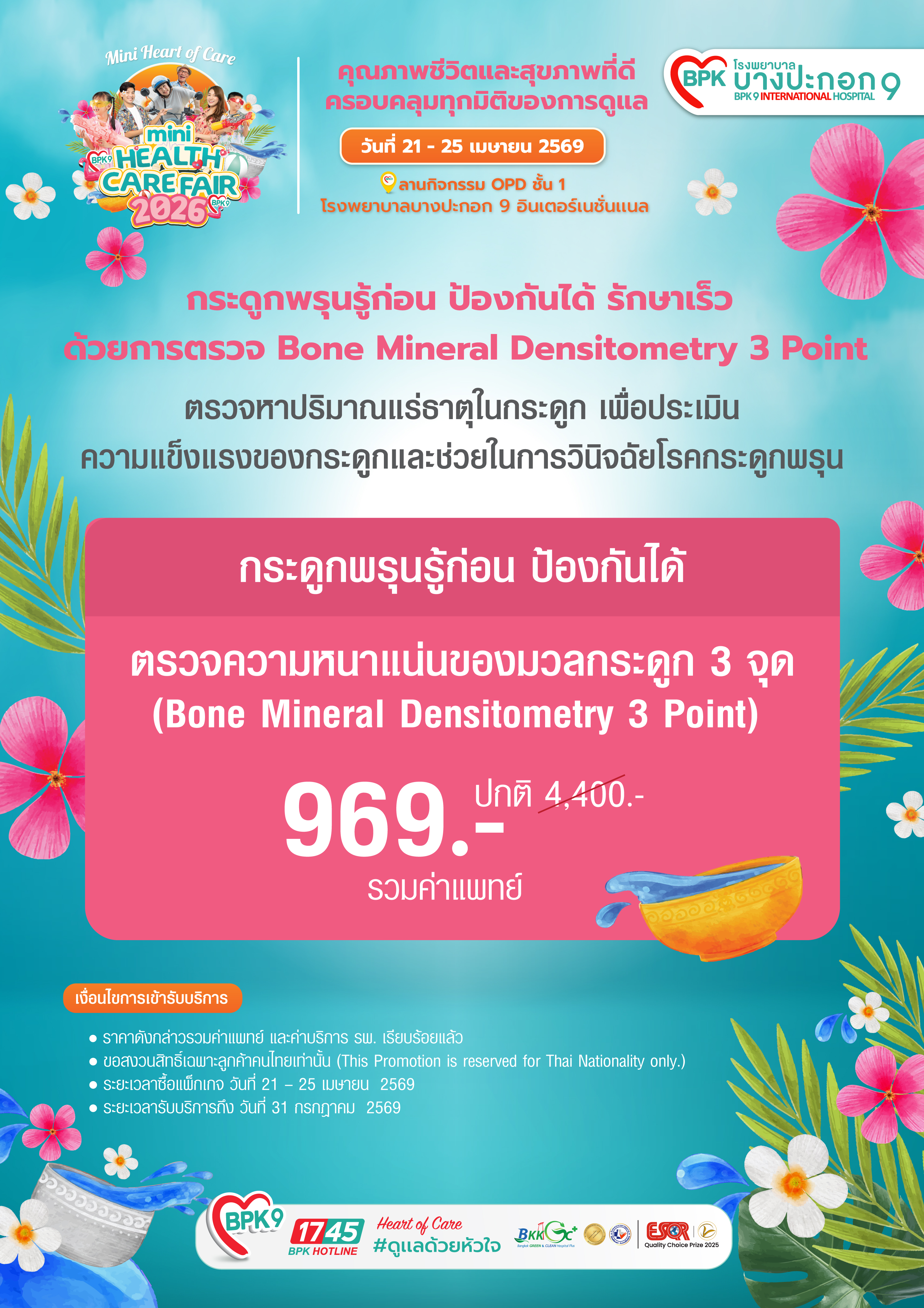 HCF โปรแกรมตรวจความหนาแน่นของมวลกระดูก 3 จุด ( Bone Mineral Densitometry 3 Point) ราคา 969.-