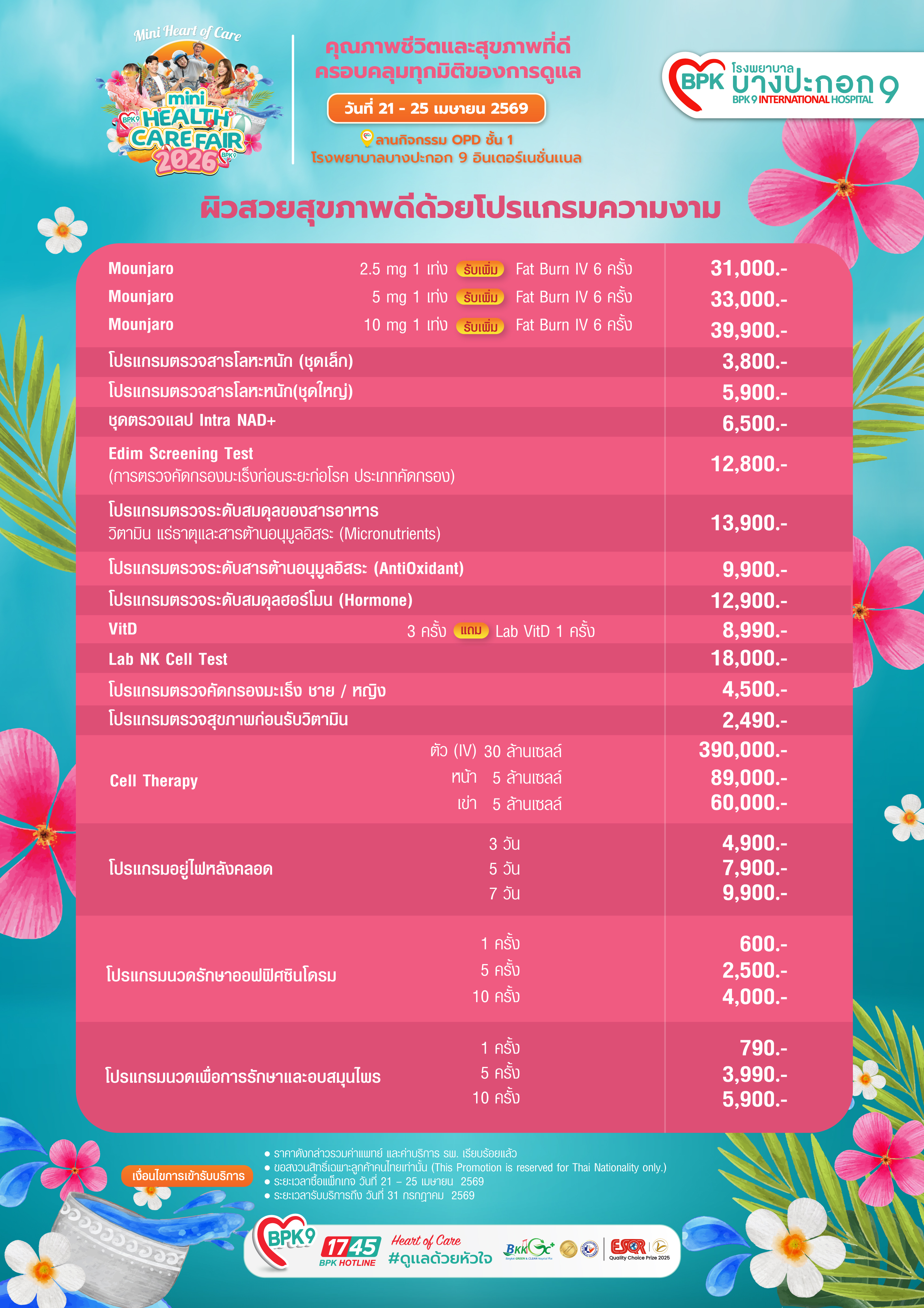 - ราคาพิเศษดังกล่าวรวมค่าแพทย์และค่าบริการโรงพยาบาลเรียบร้อยแล้ว