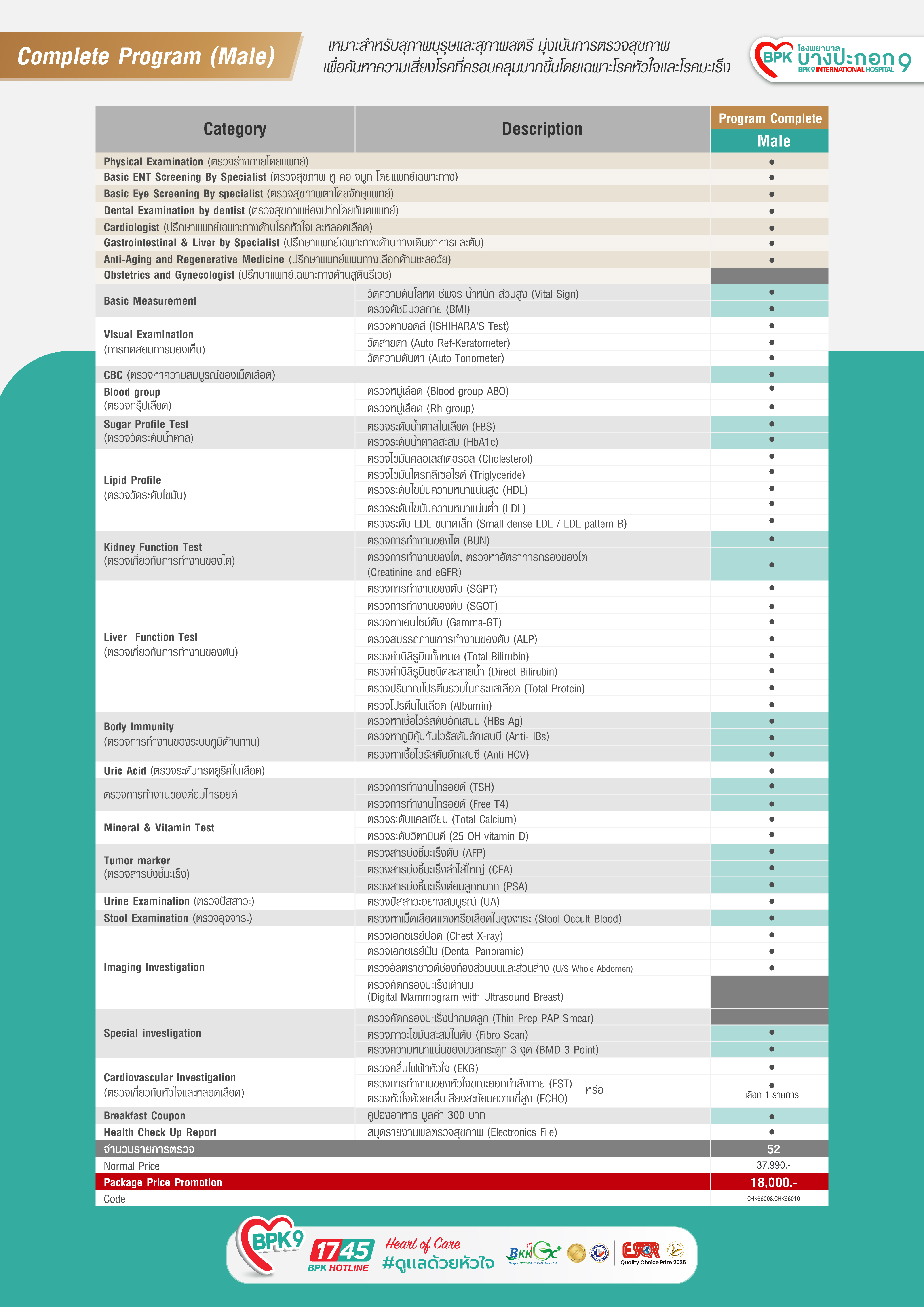 (Male) โปรแกรมตรวจสุขภาพ Complete