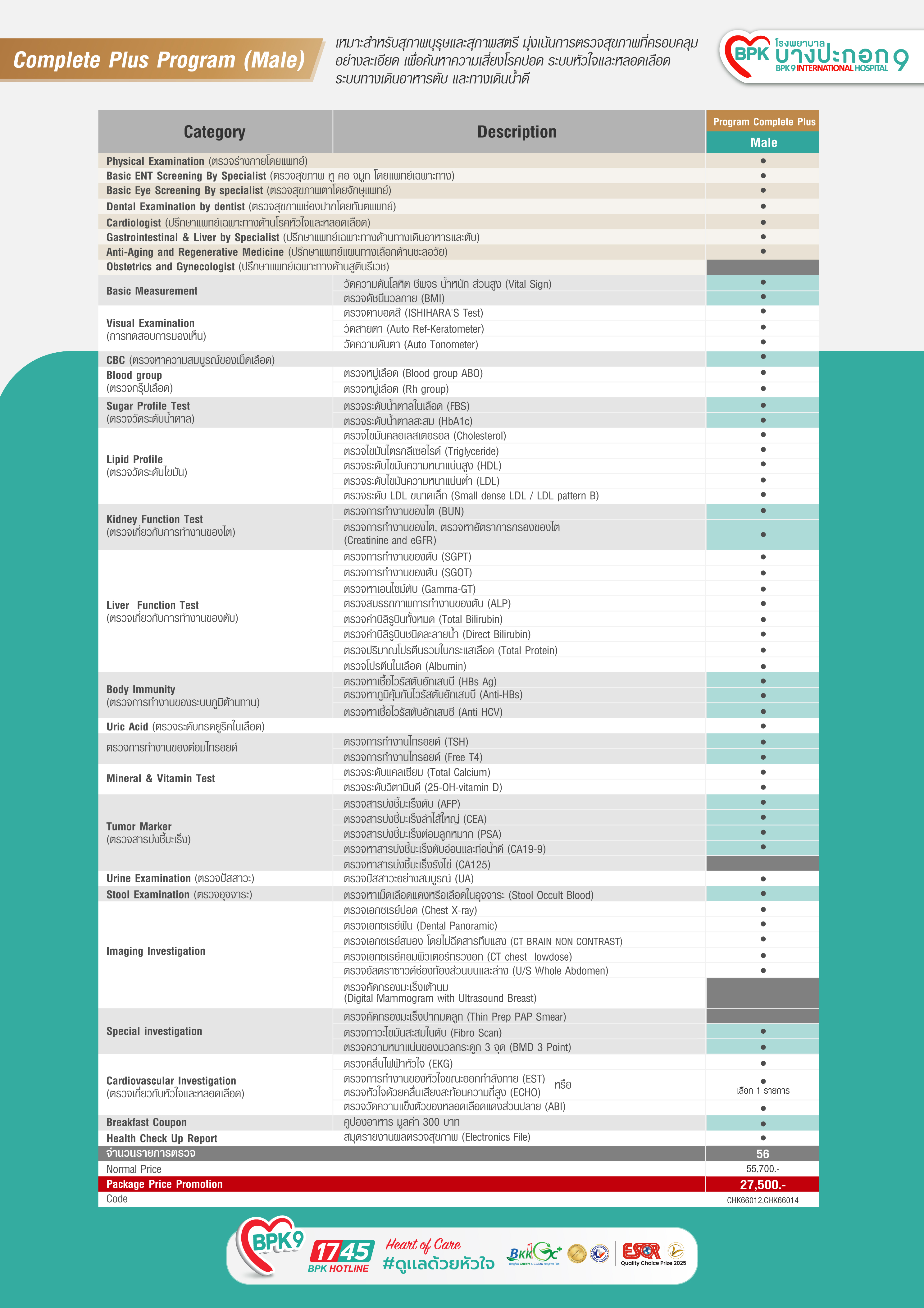 (Male) โปรแกรมตรวจสุขภาพ Complete Plus