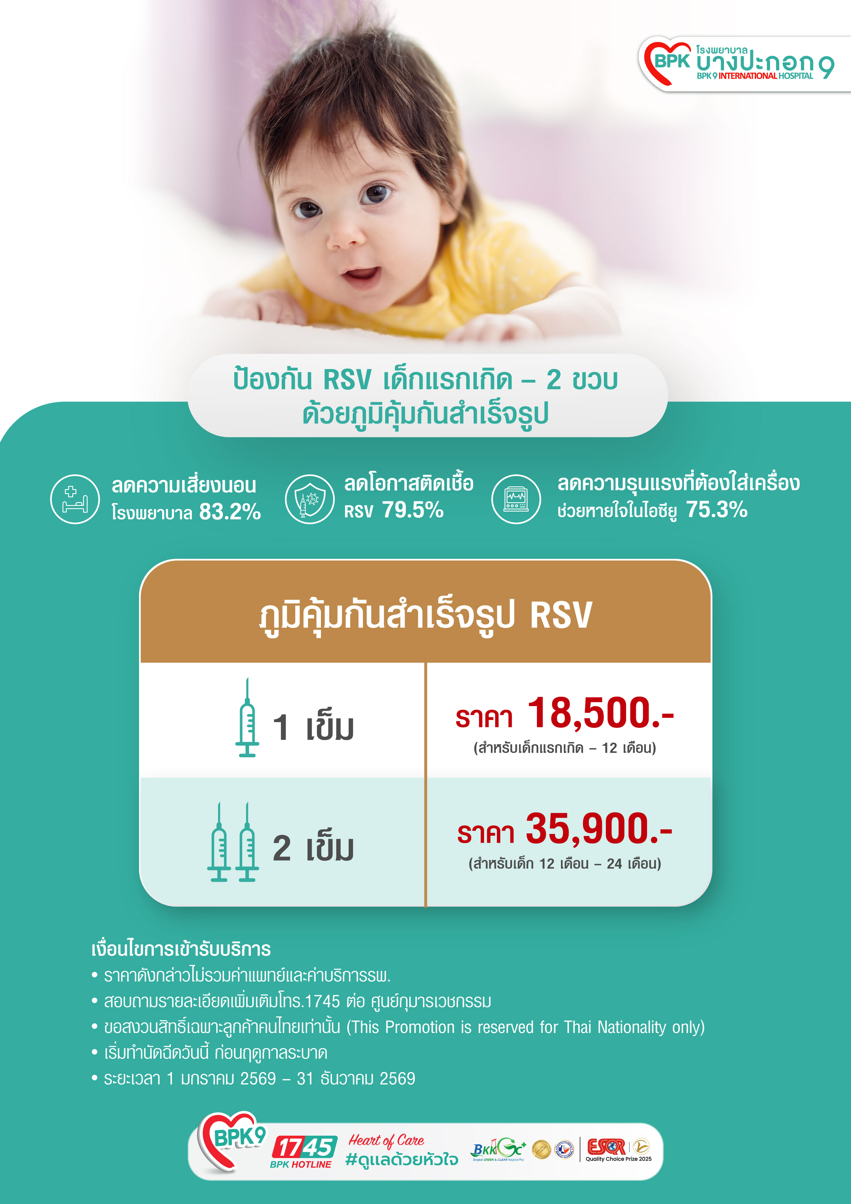 ภูมิคุ้มกันสำเร็จรูป RSV สำหรับเด็กแรกเกิด 0 – 2 ปี