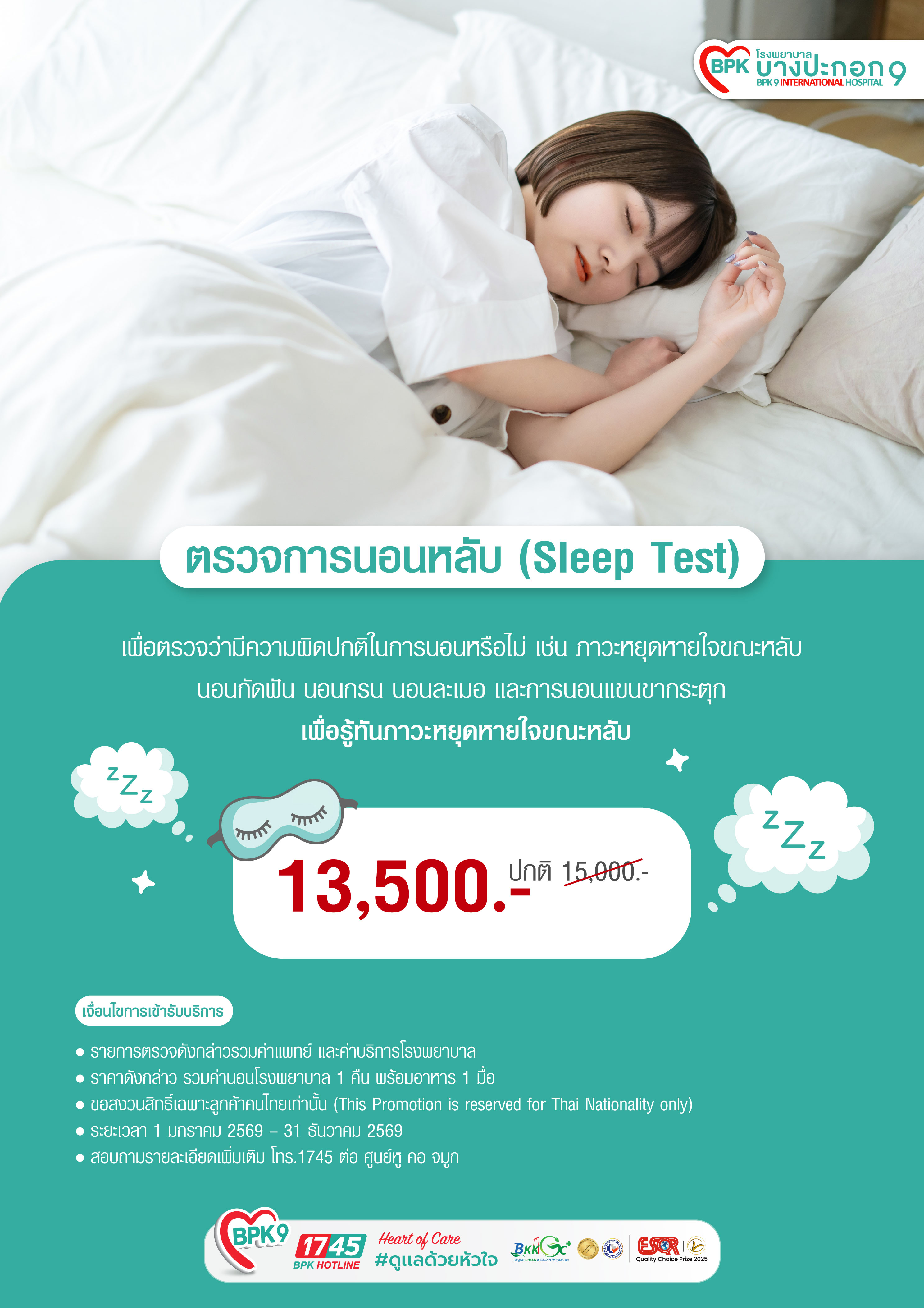 หากคุณเคยตื่นขึ้นมาแล้วรู้สึกไม่สดชื่น หรือมีอาการง่วงนอนตอนกลางวัน อาจเป็นสัญญาณที่บ่งบอกว่าคุณต้องการการตรวจสุขภาพการนอนหลับ (Full Sleep Test) ที่ โรงพยาบาลบางปะกอก 9 อินเตอร์เนชั่นแนล
