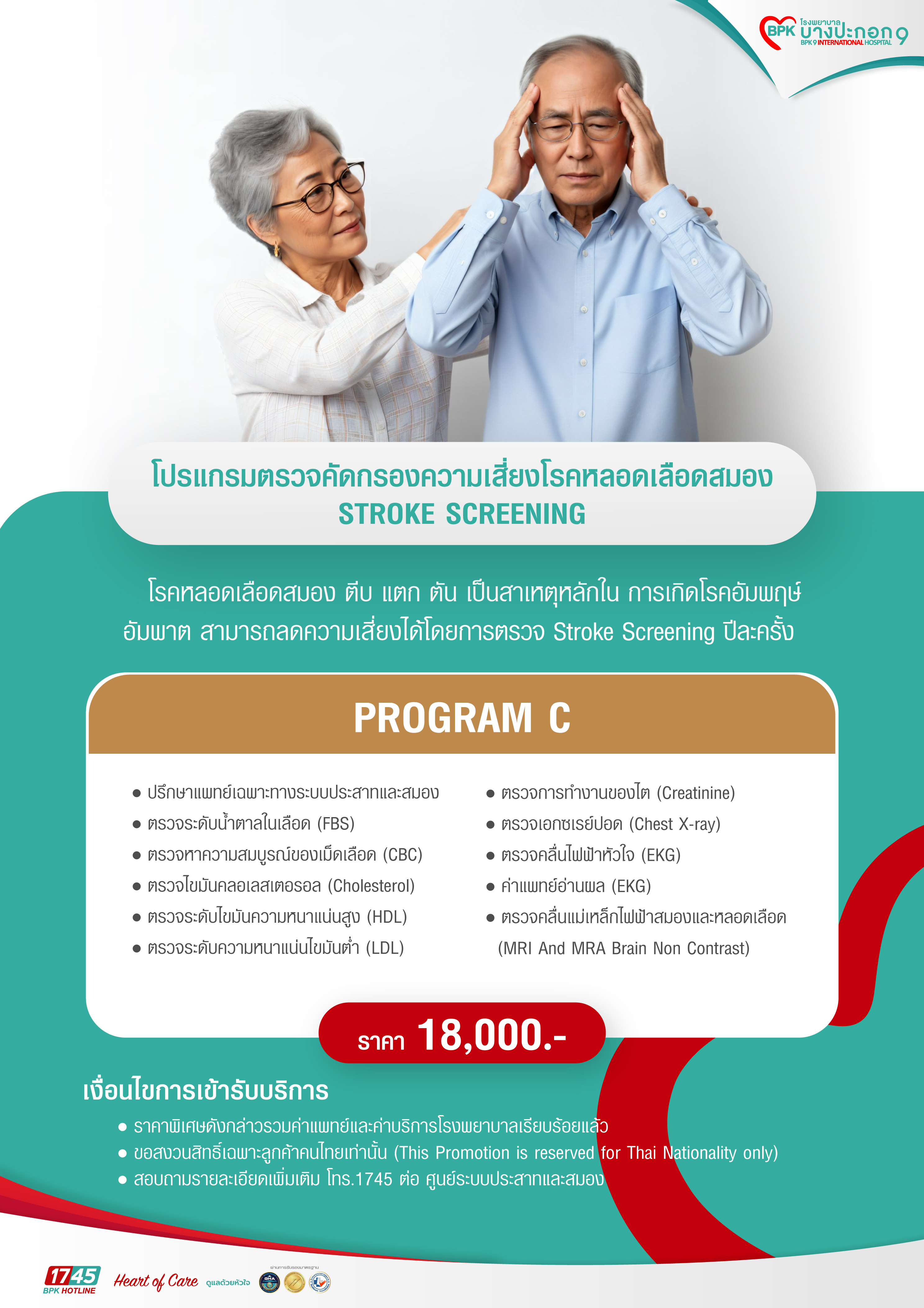 Health Together_โปรแกรมตรวจคัดกรองความเสี่ยงต่อโรคหลอดเลือดสมอง Package C ราคา 18,000 บาท