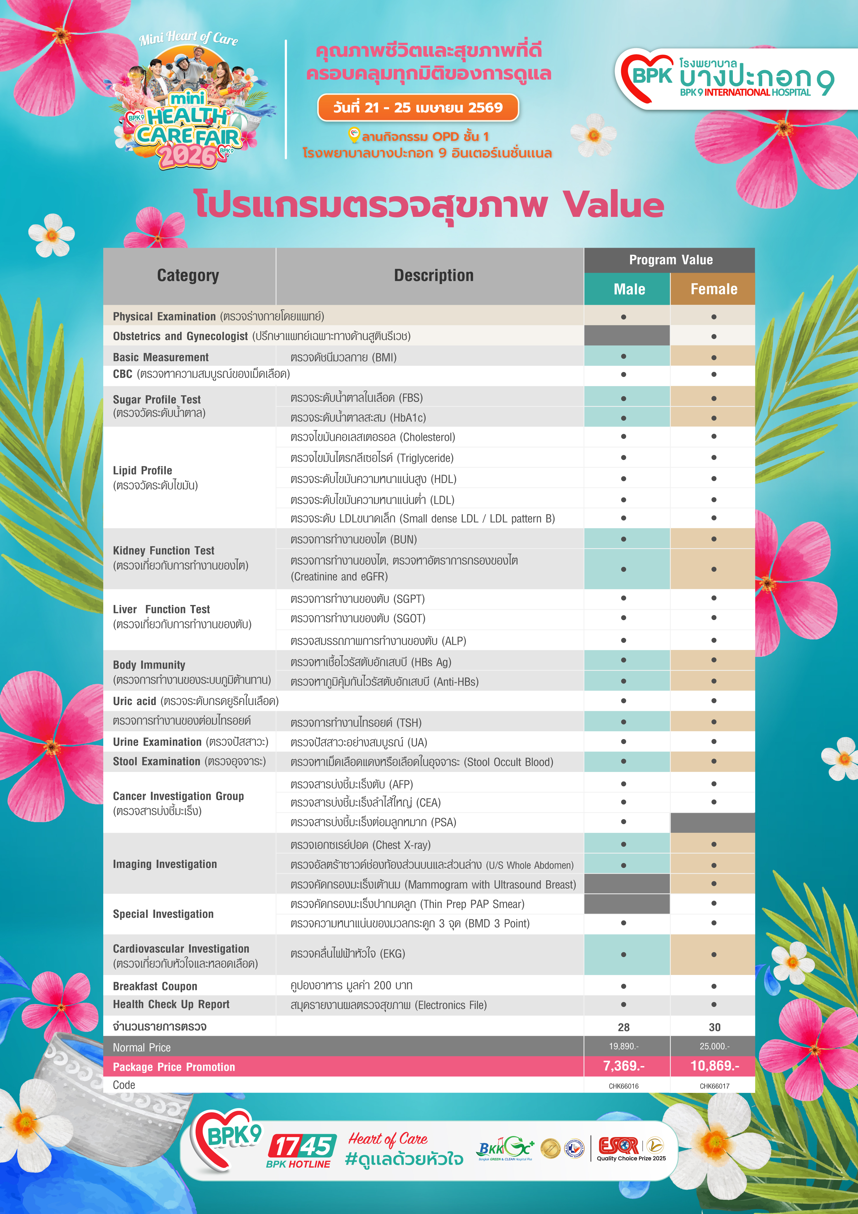 โปรแกรมตรวจสุขภาพ Value Check up Male