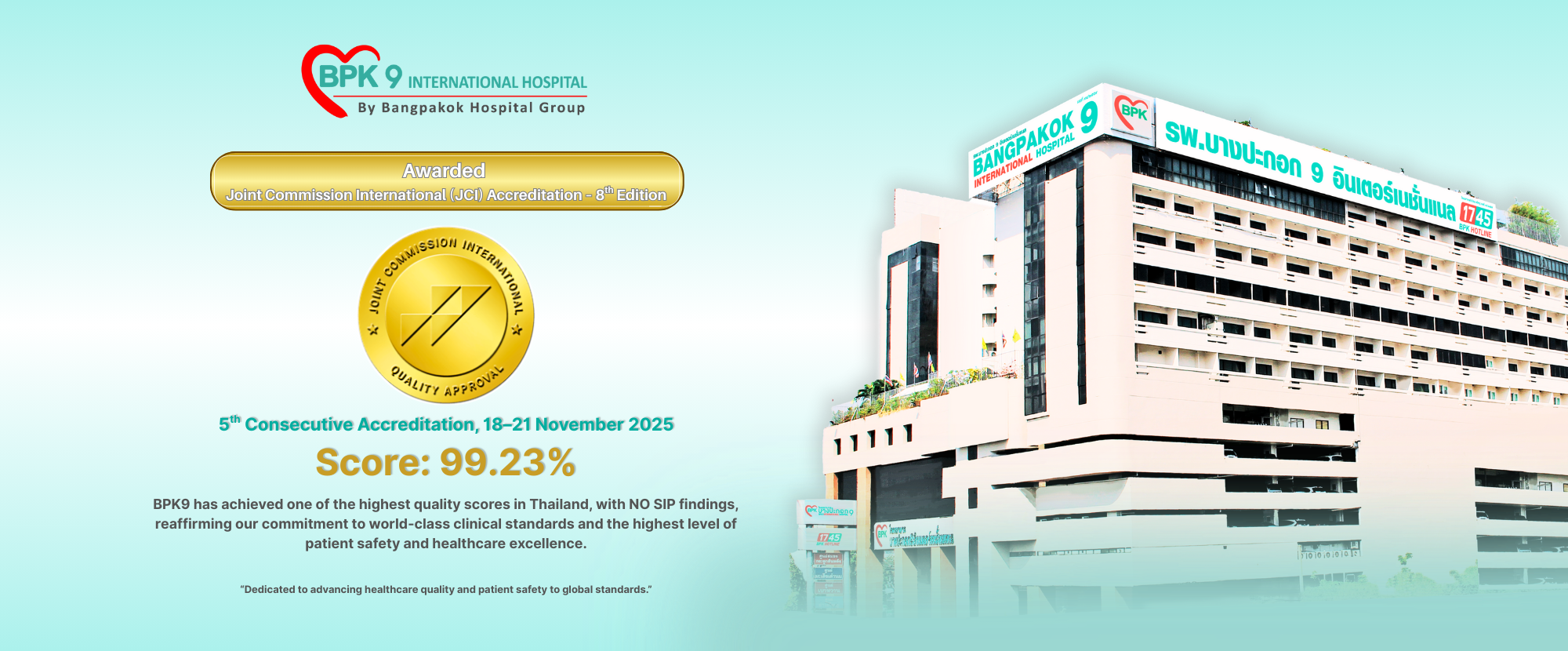 BPK9 International Hospital is dedicated to providing the highest standards of quality and safety in patient care.