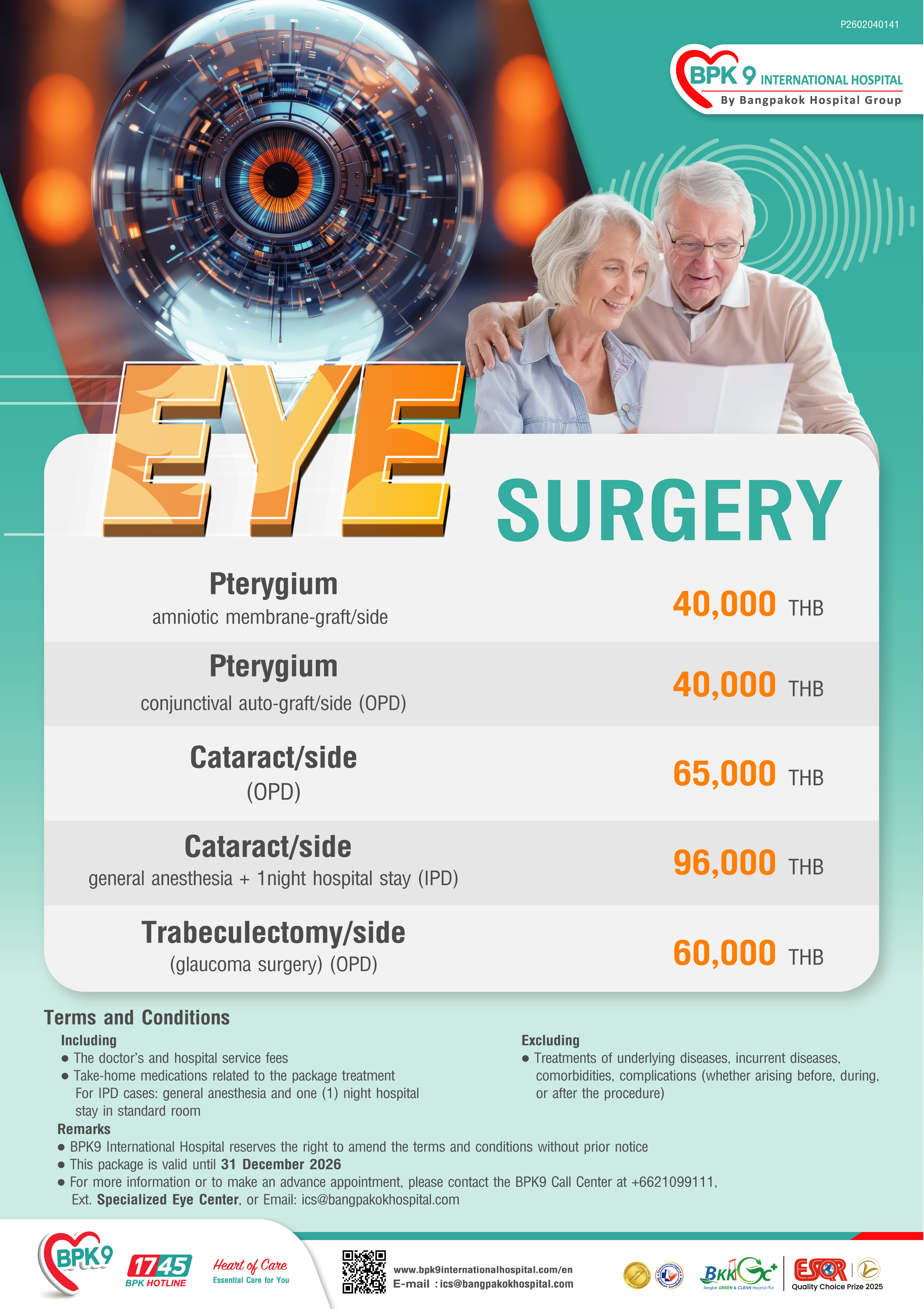 This package is ideal for those experiencing vision problems due to cataracts, pterygium, or glaucoma. Book your consultation today for clearer, healthier eyes!