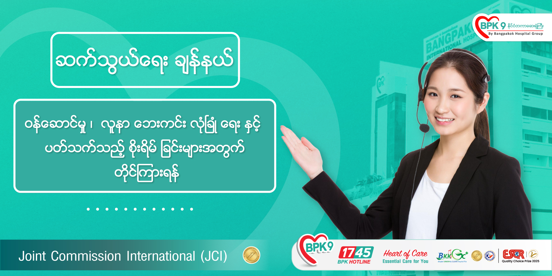 အရည်အသွေးနှင့် လူနာဘေးကင်းရေးဆိုင်ရာ စိုးရိမ်မှုများ တိုင်ကြားနိုင်သည့် လမ်းကြောင်းများဘန်ပကော့ (၉) အပြည်ပြည်ဆိုင်ရာဆေးရုံသည် လူနာစောင့်ရှောက်မှုတွင် အမြင့်မားဆုံးသော အရည်အသွေးနှင့် ဘေးကင်းရေး စံနှုန်းများကို ပေးအပ်ရန် အစဉ်အမြဲ ကြိုးပမ်းလျက်ရှိပါသည်။ ကျွန်ုပ်တို့၏ ဝန်ဆောင်မှုအရည်အသွေး သို့မဟုတ် လူနာဘေးကင်းရေးနှင့် ပတ်သက်၍ စိုးရိမ်မှုများ သို့မဟုတ် အကြံပြုချက်များရှိပါက ဆေးရုံ၏ စီမံခန့်ခွဲရေးဌာနသို့ အောက်ပါတရားဝင်လမ်းကြောင်းများမှတစ်ဆင့် ဆက်သွယ်နိုင်ပါသည် -