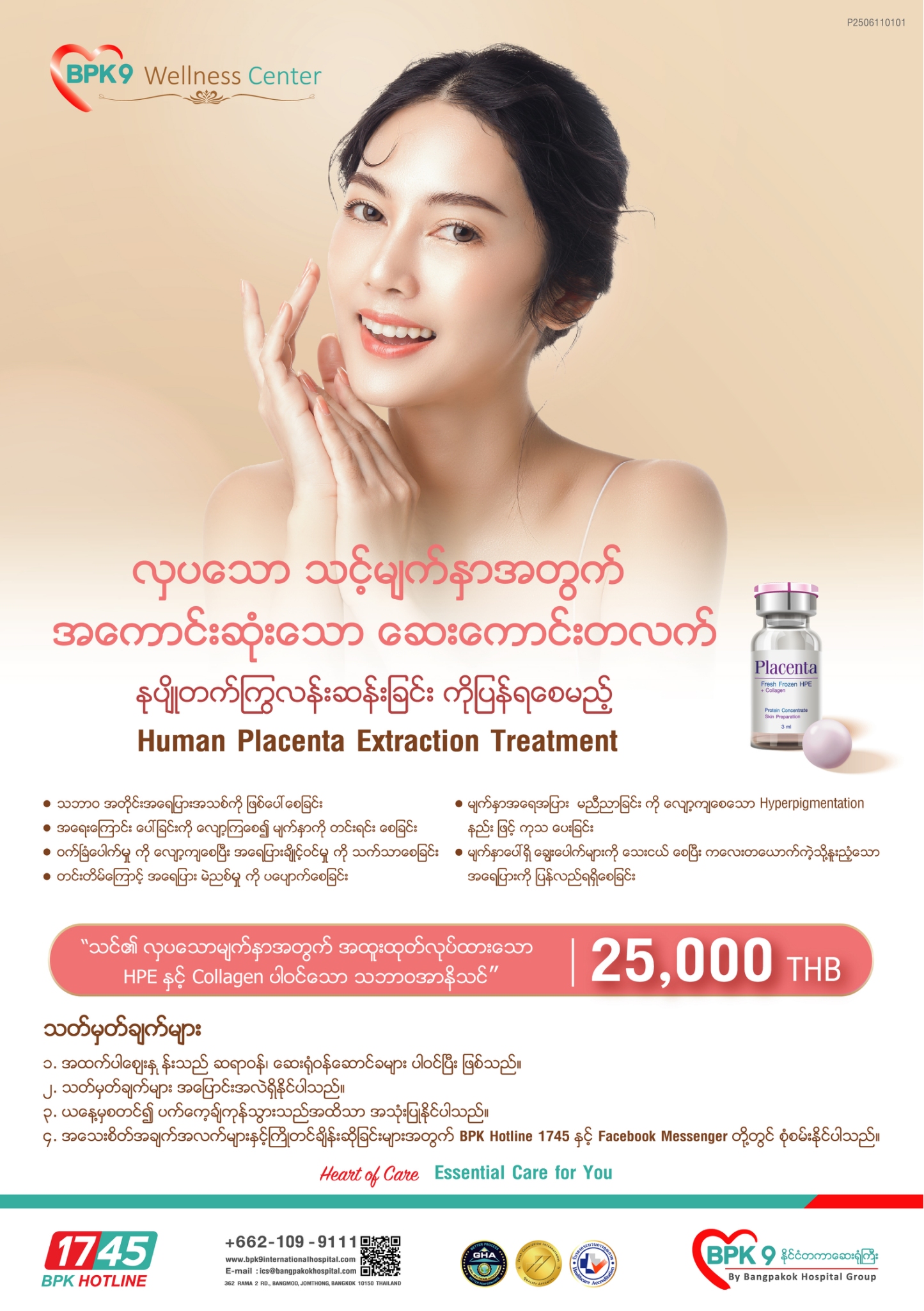 အသားအရေ ကြည်လင်တောက်ပ ချစ်စရာကောင်းအောင် လှပချင်သူတိုင်းအတွက်– Placenta Extract