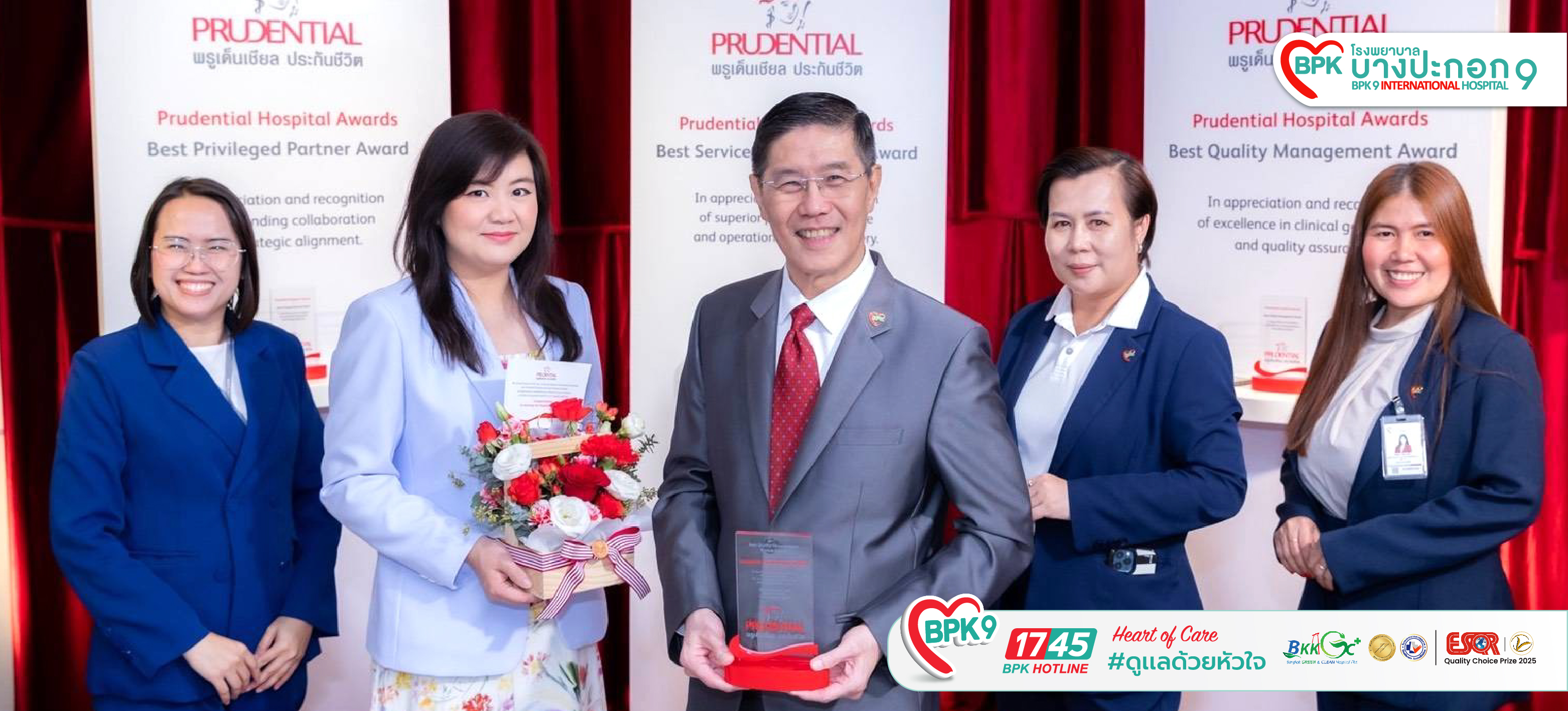 โรงพยาบาลบางปะกอก 9 อินเตอร์เนชั่นแนล (BPK9) ได้รับรางวัลเกียรติยศ "Best Quality Management Award รางวัลการให้ความร่วมมือเกี่ยวกับการให้บริการสินไหมประกันสุขภาพระหว่างองค์กรยอดเยี่ยม" ในงานประกาศผลรางวัล "Prudential Hospital Awards 2025" ณ โรงแรมวอลดอร์ฟ แอสโทเรีย กรุงเทพ เมื่อวันที่ 30 มีนาคม 2569 ที่ผ่านมา