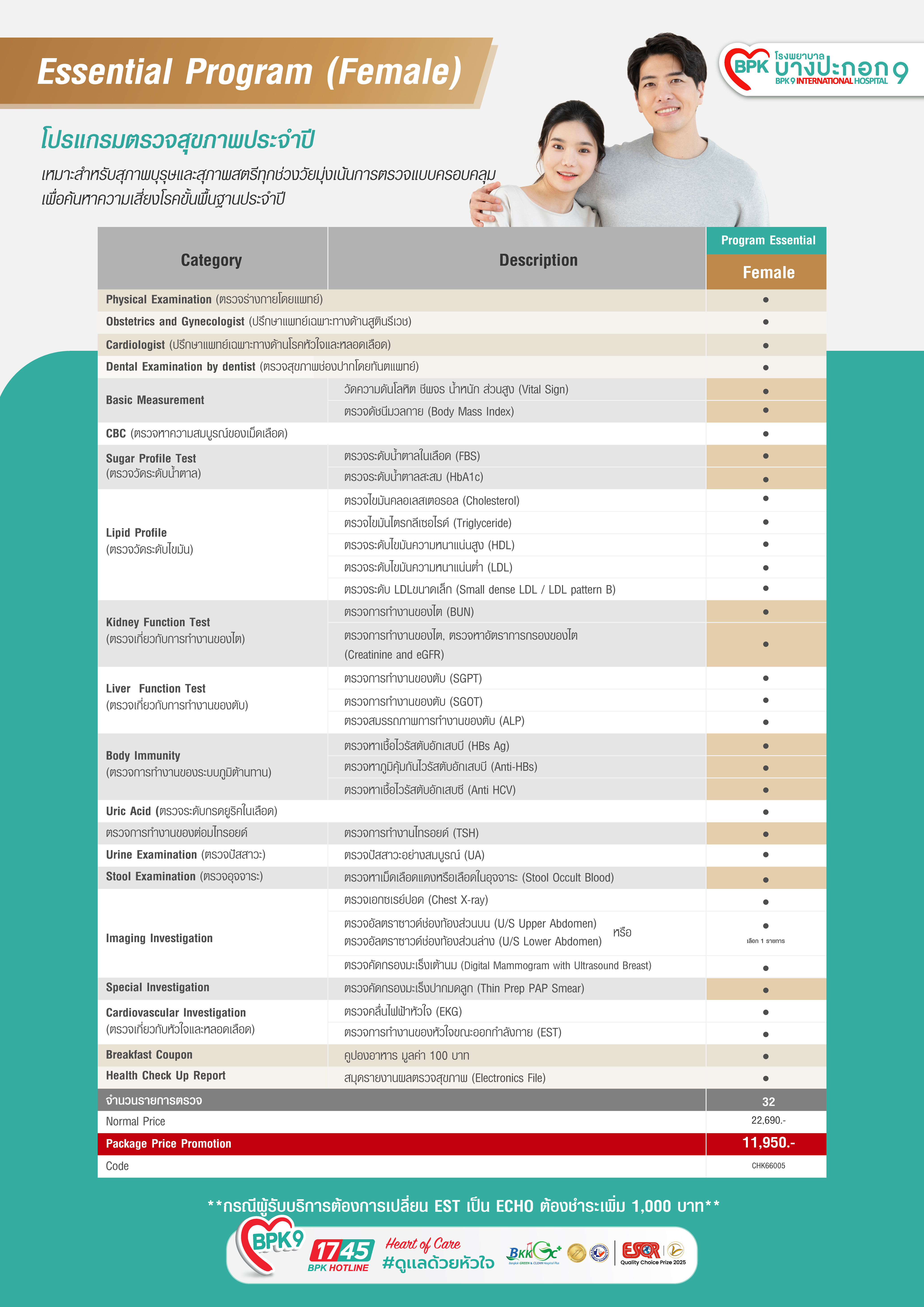 (Female) โปรแกรมตรวจสุขภาพ Essential