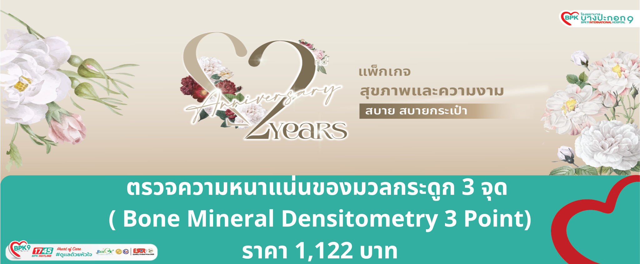 HBD โปรแกรมตรวจความหนาแน่นของมวลกระดูก 3 จุด ( Bone Mineral Densitometry 3 Point) ราคา 1,122.-