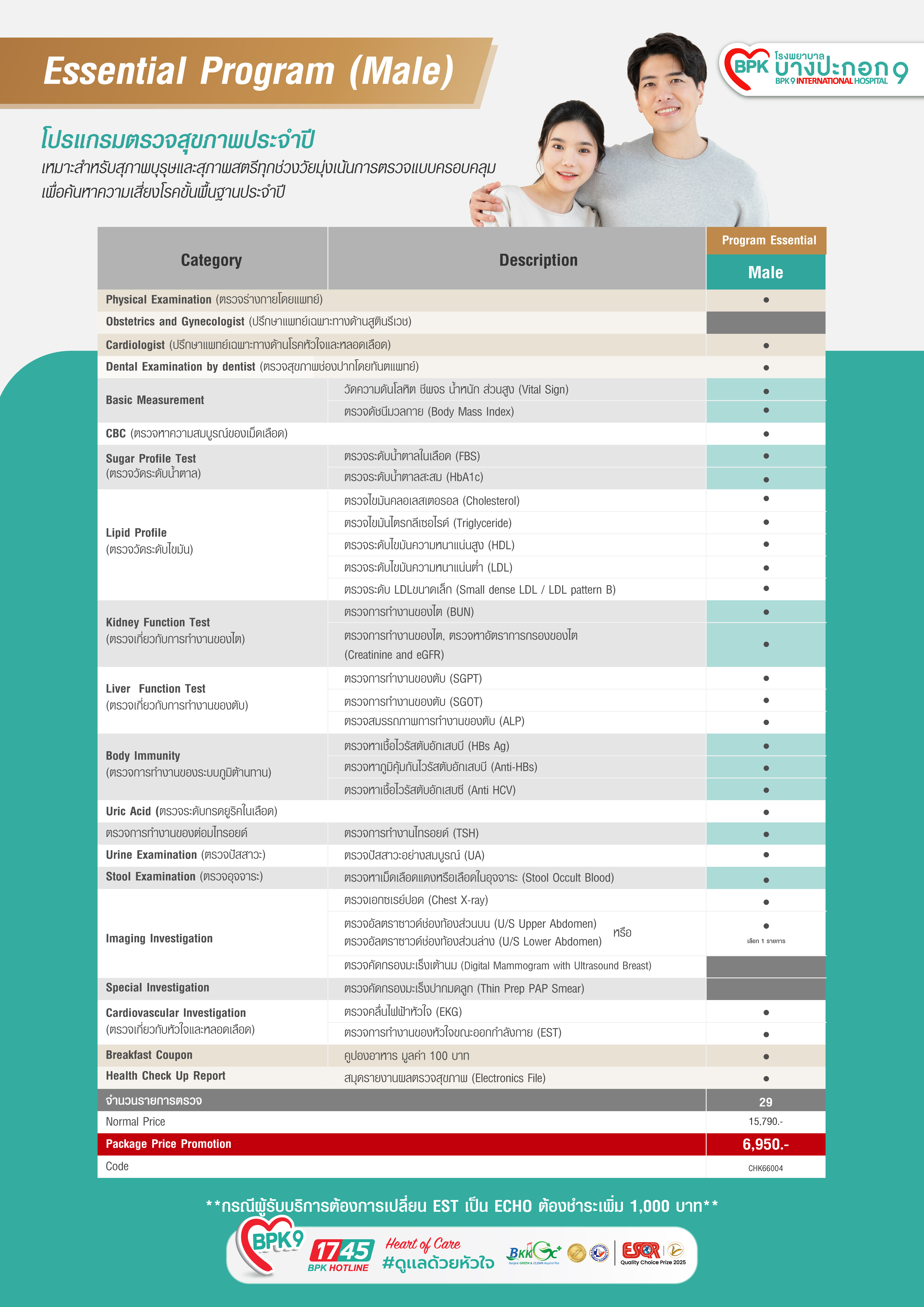 (Male) โปรแกรมตรวจสุขภาพ Essential